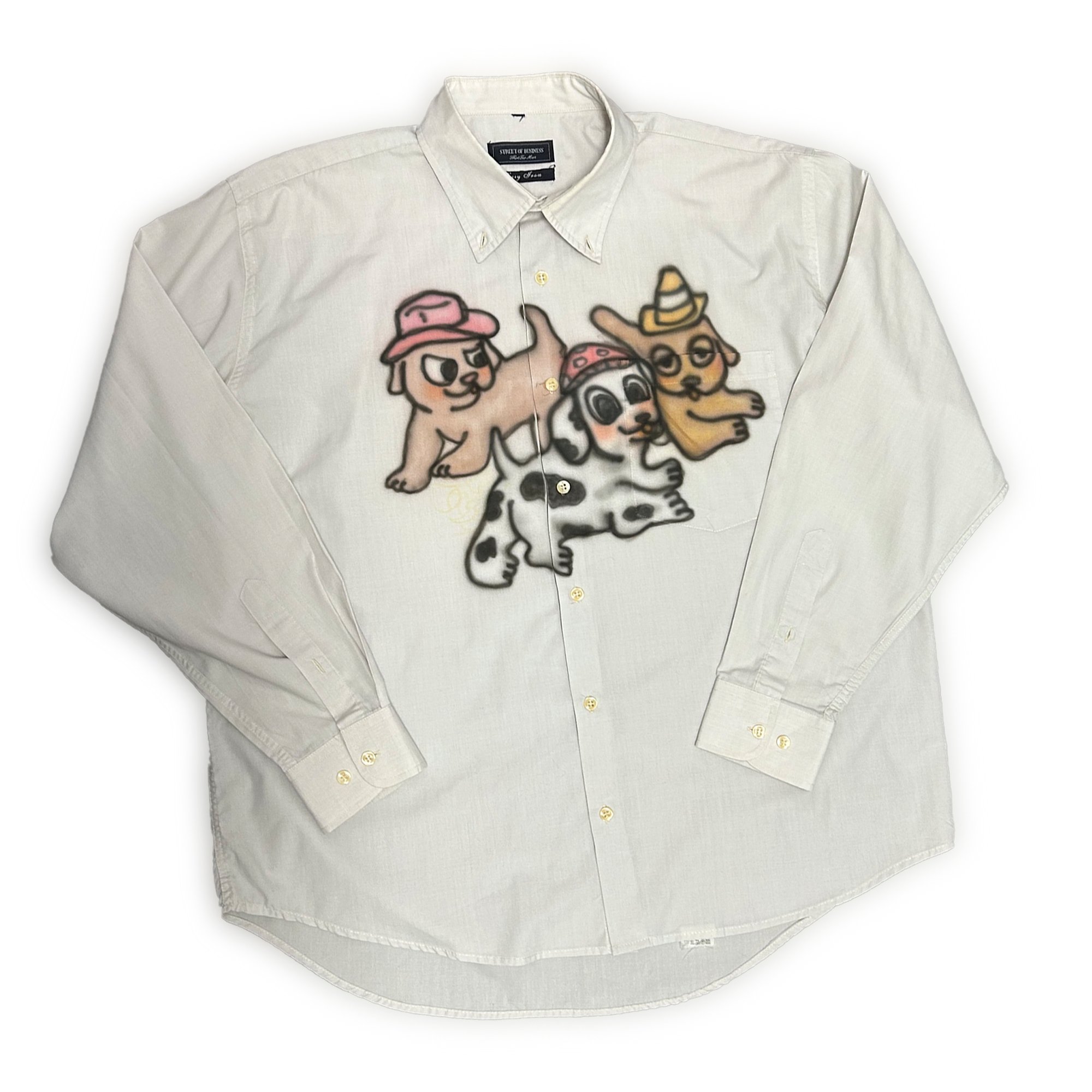 Camisa de segunda mano pintada con aerógrafo.